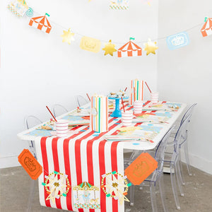 Step right up to the tastiest show in town with County Fair Carousel Lunch Plates! These spectacular paper plates mimic the enchanting design of a carousel, complete with intricately detailed jumpers and stander animals, capturing the spirit of a charming fairground. Perfect for adding a touch of carnival magic to any occasion, these carnival plates are ideal for serving snacks, treats, or a full meal with style and flair. Whether it's a circus-themed extravaganza or a playful carnival birthday bash, these carousel plates will make your mealtime a merry-go-round of fun.