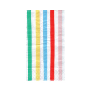 Add a vibrant stripe of style to your gatherings with Multicolored Striped Paper Guest Towels. These large paper napkins showcase vertical stripes in various colors, including green, yellow, blue, red, and pink, set against a crisp white background. Perfect for elevating any occasion, from birthdays to showers, these versatile dinner napkins offer practicality and a pop of color to your table setting. Whether used for wiping hands or serving alongside drinks and appetizers, these rainbow-striped napkins are an easy way to infuse a dose of fun into your event while keeping things neat and tidy for your guests to enjoy.