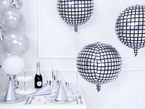 Celebrate the New Year by using a Silver Disco Ball Orbz Foil Balloon! This foil balloon resembles a shimmering multicolor disco mirror ball. Orbz balloons aren't your average balloon: it's shaped like a beach ball. Fill it up with air or helium, and then mix and match with other solid-color and printed foil and latex balloons to create a balloon bouquet or photo backdrop for your New Year's Eve party. Hang it from the ceiling to transform your party space into a dance floor or to complement your disco party decorations!