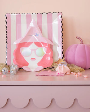 Bring a little sparkle, sweetness, and sorcery to the table with these Good Witch Halloween Dessert Plates. Featuring a chic witch design with pink sunglasses, bouncy pastel-pink hair, and a classic pointed witch hat, these whimsical plates are a playful nod to everyone’s favorite good witch. Accented with holographic foil for a magical shimmer, they’re perfect for a Good Witch Bad Witch party, witch-themed Halloween celebration, or any gathering that calls for pastel witchcore glamour.