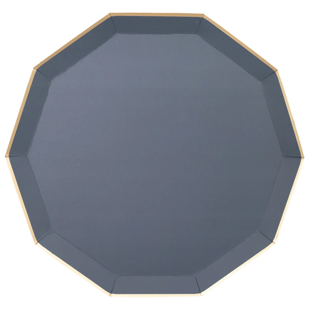Set the stage for a chic dining experience with Midnight Blue Decagonal Dinner Plates. These large paper plates boast a sleek decagonal shape, set against a deep navy background with gold foil trim. Say goodbye to post-party cleanup stress as you indulge in your favorite meal on these disposable plates. Plus, their solid color makes them the ultimate canvas for layering plates and coordinating with your party theme. Whether it's a nautical baby shower, a beach party, a birthday bash, or a summer outing at the lake, these navy plates will make waves at your next celebration!