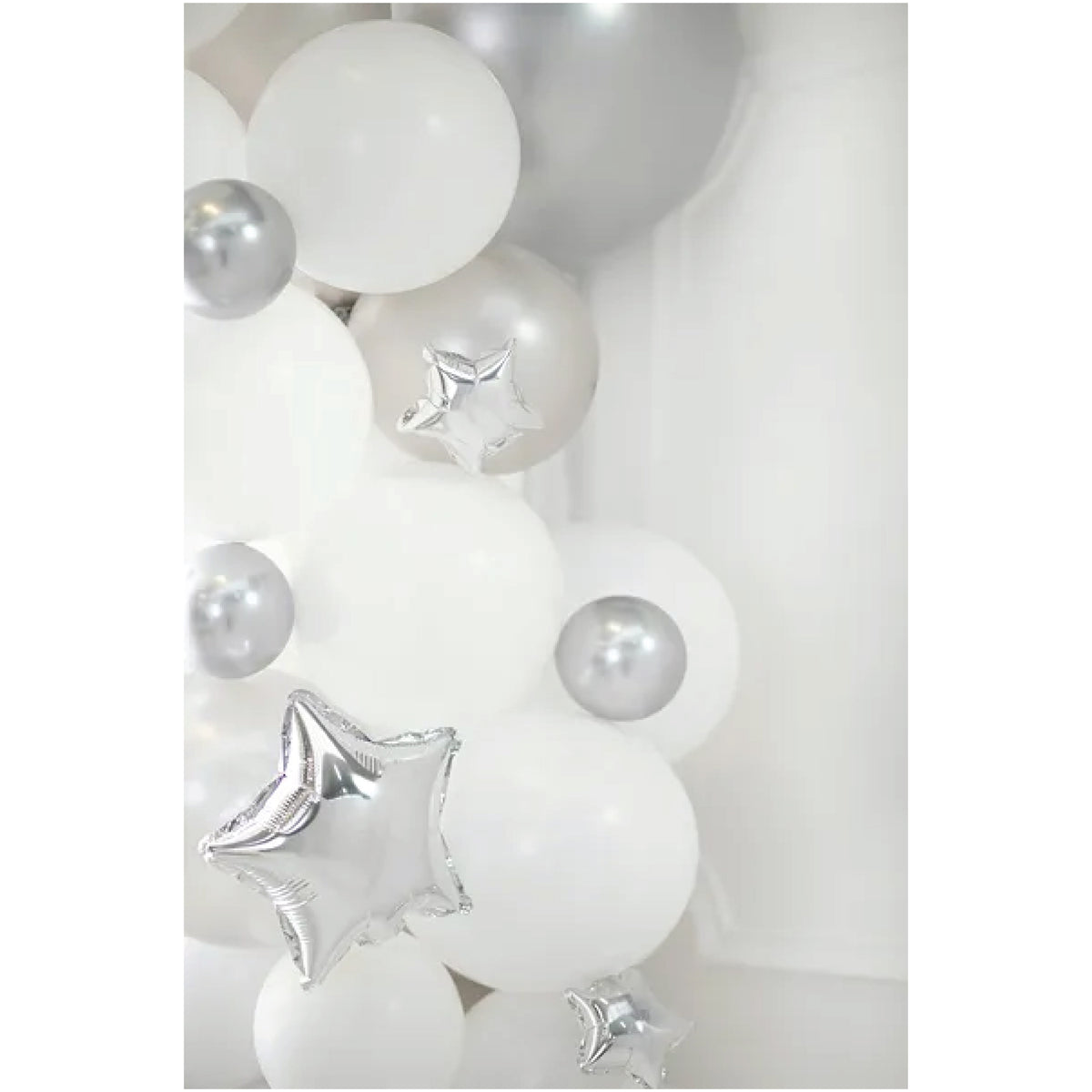 Create star power for your party decorations with these Silver Star 8in Balloons 25ct! These star-shaped foil balloons come in a pack of 25. They will shimmer at your New Year's Eve party, baby shower, or your child's outer space birthday. Use this silver star balloon alone or mix and match them with other balloons to create a balloon bouquet. Brighten up your child's birthday party with this shiny star balloon!