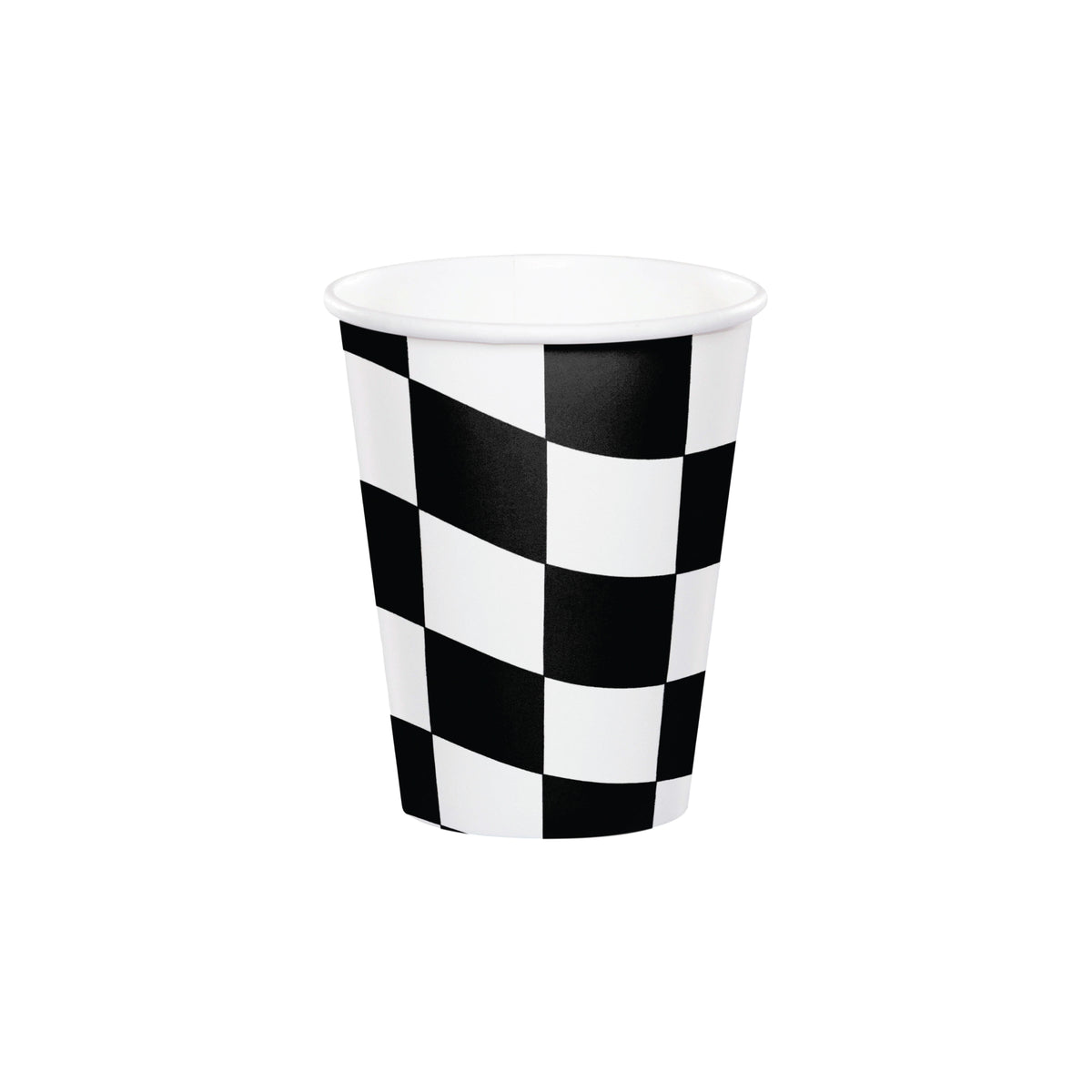 Come in for a pit stop at the drink table to enjoy delicious beverages in Classic Checkered Flag Party Cups! These paper cups feature a classic checkered flag pattern. Your guests will love to race to grab a drink in these race car beverage cups. Match these cups with the rest of your classic checkered flag table decorations for your child's Two Fast Two Curious birthday party. Serve friends and family your favorite party drinks using classic race car cups!