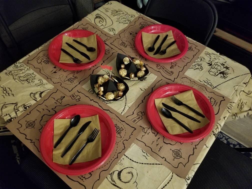Your crew will be ready to board their ship when you decorate with these Black Pirate Boat Table Decorations. These DIY paper decorations feature boats made of black paper with red flags. Assemble the table centerpieces and scatter the boats across the table to complete your little pirate's party decorations. Pair this table decoration kit with other pirate-themed party supplies to complete your little one’s pirate birthday celebration!