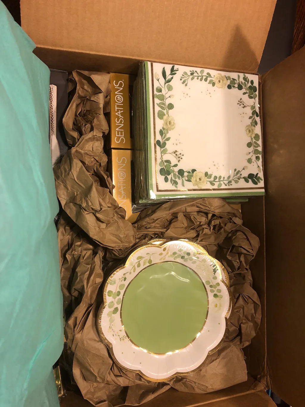 Add a touch of nature to your bridal shower with these Botanical Garden Lunch Napkins. These elegant paper napkins feature delicate greenery and cream flowers on a white background with a gold foil and sage green trim. Use these lunch napkins at your table setting for your botanical bridal shower or baby shower for an elegant and natural feel.