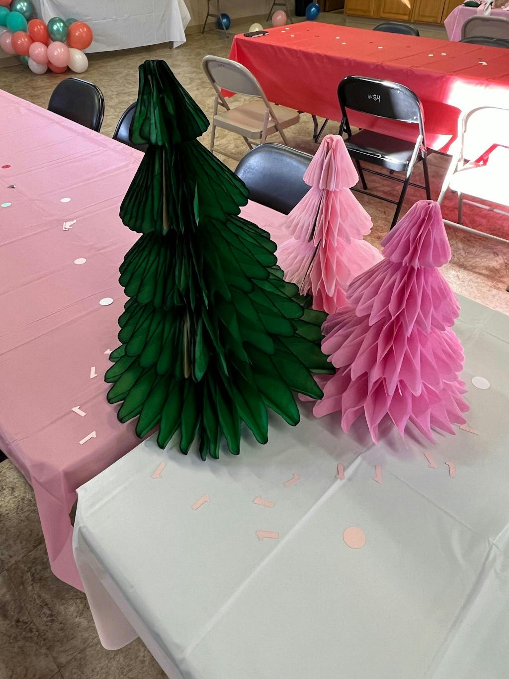 Create a beautiful tabletop display with a large Dark Green Christmas Tree Honeycomb Paper Centerpiece. This Christmas tree-shaped centerpiece is made of honeycomb tissue paper. You'll be able to create a winter wonderland in seconds using the adhesive closure. From the Christmas mantle to your tablescape, this honeycomb tree will add an extra touch of merry to any space this holiday season. Pair with other sizes and colored honeycomb trees to match your Christmas party theme. Use this Christmas shelf sitter year after year to decorate your home for the holidays.