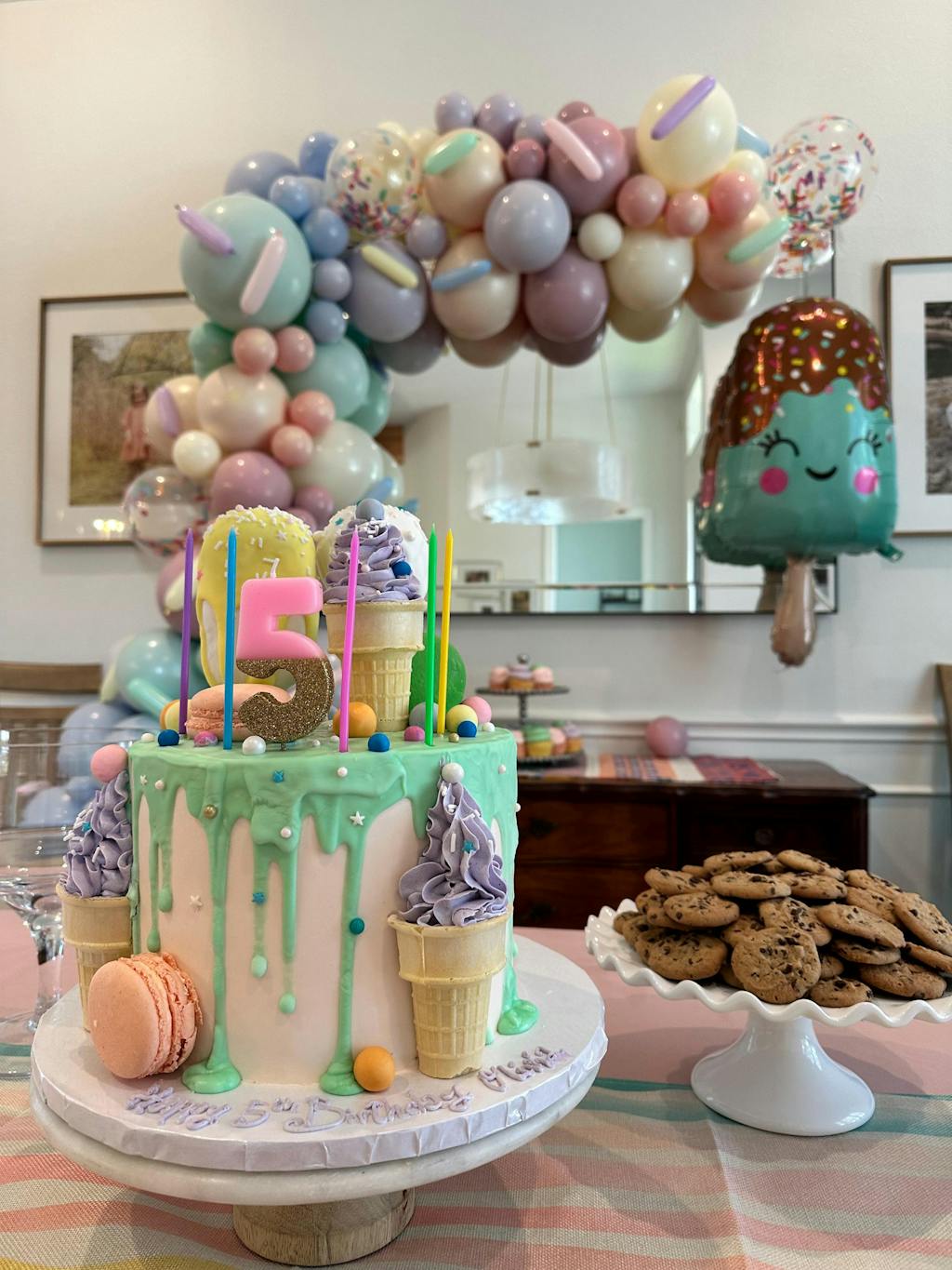 Your guests will scream for ice cream when you decorate your ice cream party with this Giant Happy Ice Cream Bar Balloon! This large foil balloon is shaped like a teal ice cream bar on a stick and has a smiling face with rosy pink cheeks. Display it alone or include it in an ice cream-themed balloon bouquet with other foil and latex balloons. Use this sweet ice cream decoration at your child's ice cream social or two sweet birthday celebration.