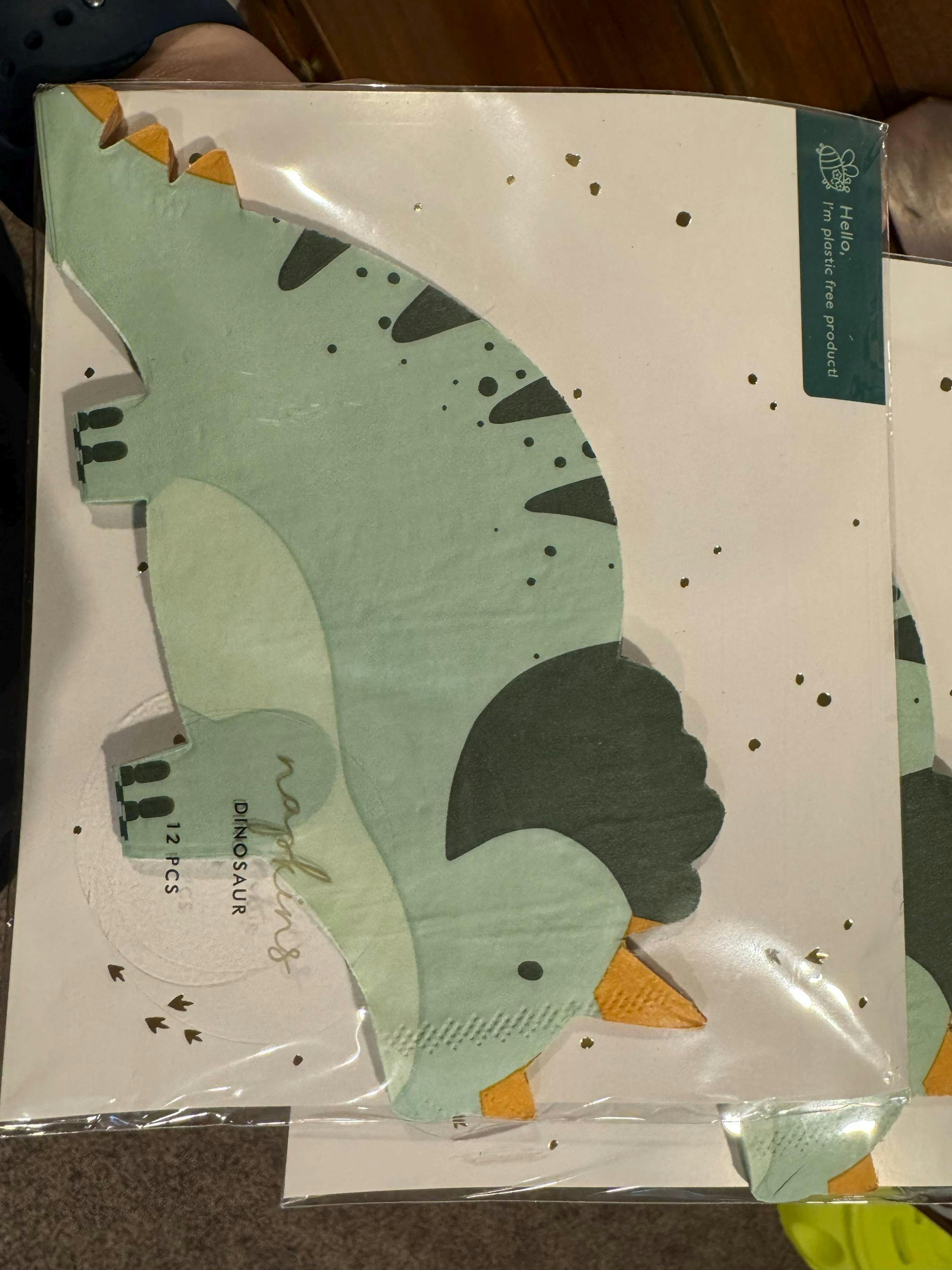 Unleash the roar-some fun at your child's prehistoric party with Green Triceratops Dessert Napkins! Shaped like adorable triceratops, these paper napkins feature a muted, dark green body with dark yellow spikes on the head and tail. Designed for ease and convenience, these disposable napkins are ideal for keeping little dino enthusiasts' fingers clean or serving with a Jurassic piece of cake. Whether celebrating a dino baby shower or a dinosaur birthday party, these dinosaur napkins transport your guests back to the age of the dinosaurs.
