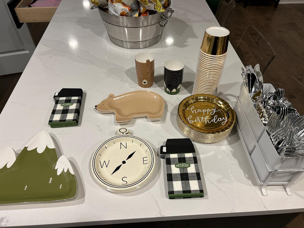 Bring the great outdoors to your little explorer's wilderness party with these fantastic Happy Camper Mountain Lunch Plates. These paper plates feature forest green mountains with three snow-capped peaks. Set a stack of these mountain plates on the buffet table so guests can set out on an adventure to explore the delicious meal. Whether you are planning an adventure awaits baby shower, young wild and three birthday, or one happy camper first birthday, these plates are the perfect addition to your table that will inspire your guests to go out and explore!