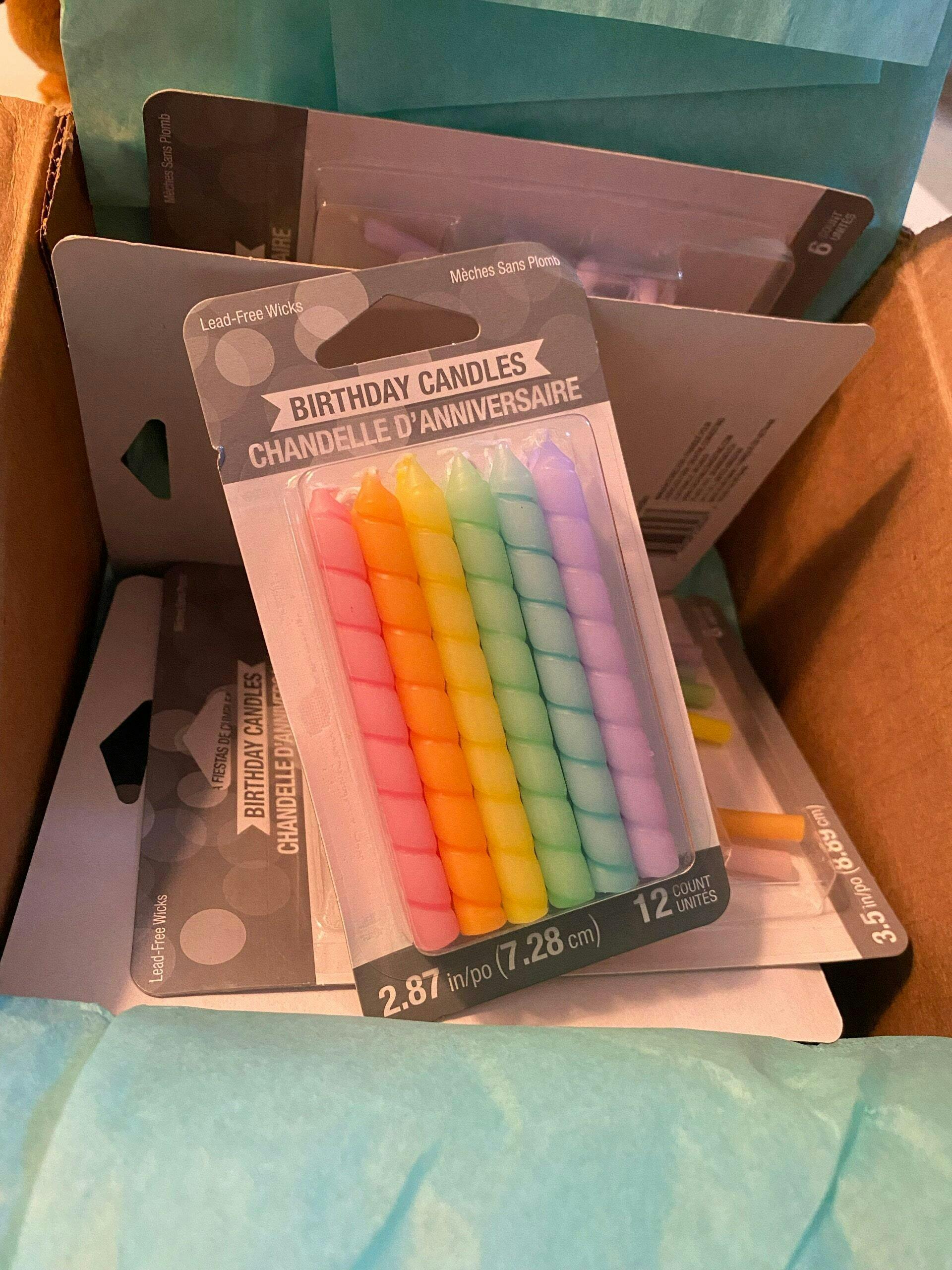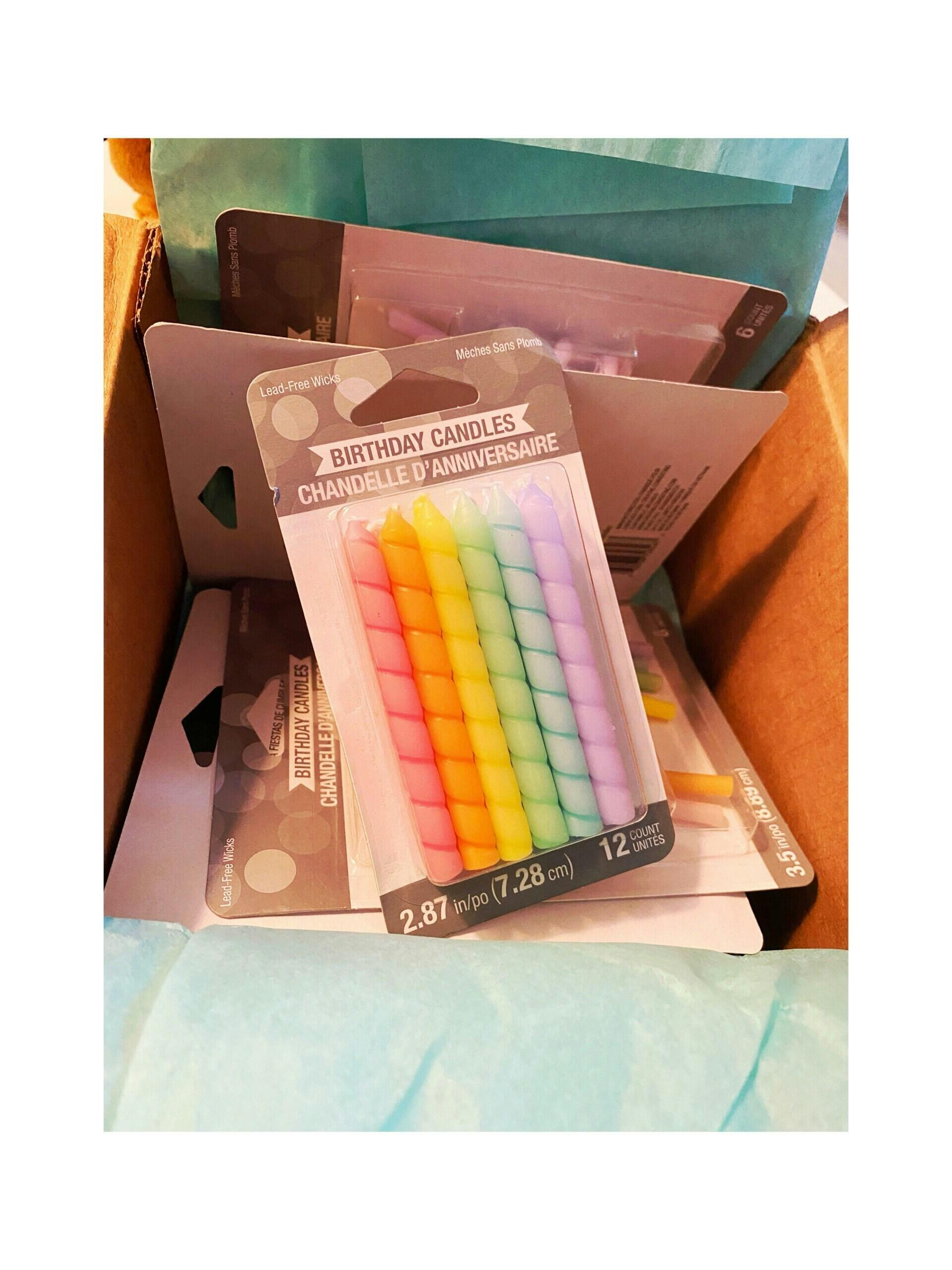 Decorate the cake and make a wish with Multicolor Pastel Spiral Birthday Candles. Featuring the sweet pastel colors of pink, orange, yellow, green, blue, and purple, these birthday candles can be used for a variety of special occasions. Brighten up a rainbow birthday cake, unicorn party desserts, cupcakes, or other celebratory sweets. Add enough pastel rainbow candles to match the guest of honor's age or use them with other candles for a unique birthday cake display.