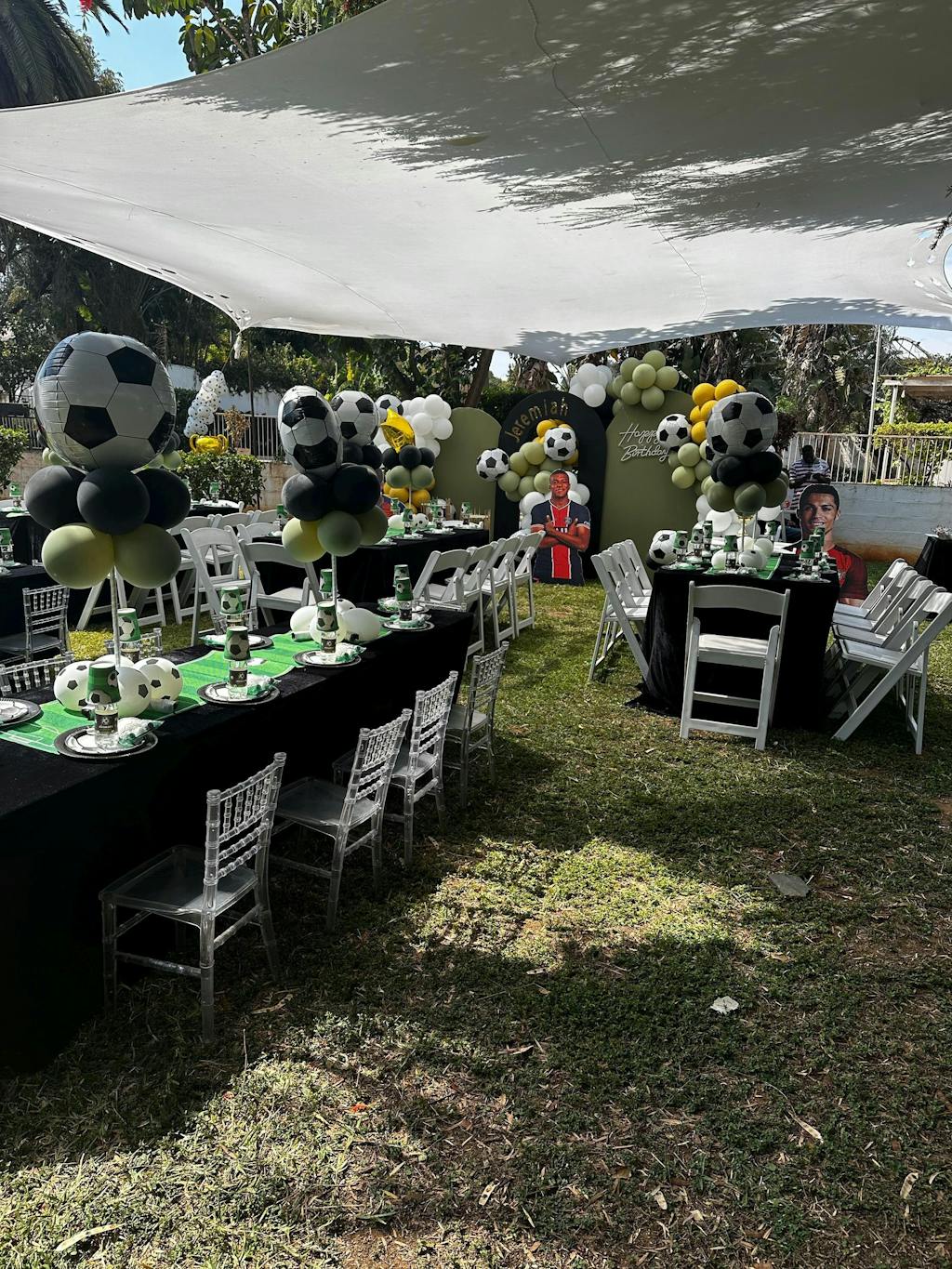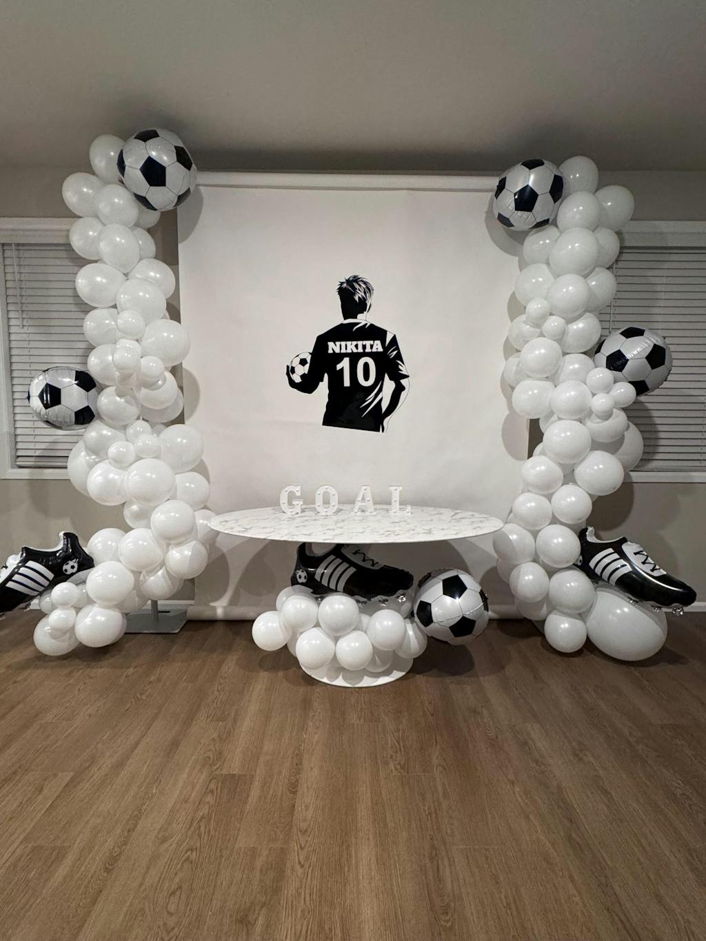 Guests will get a kick out of this Soccer Ball Foil Balloon at your little goalie's soccer birthday party! This soccer-themed foil balloon features a classic black-and-white design to resemble a soccer ball. Fill this balloon with air to use in a balloon garland, or inflate it with helium to create a balloon bouquet for a table centerpiece or photo backdrop. So whether you call it soccer or fútbol, score a goal and use this soccer balloon at a soccer birthday, a sports birthday party, or during the World Cup to cheer on your favorite team!