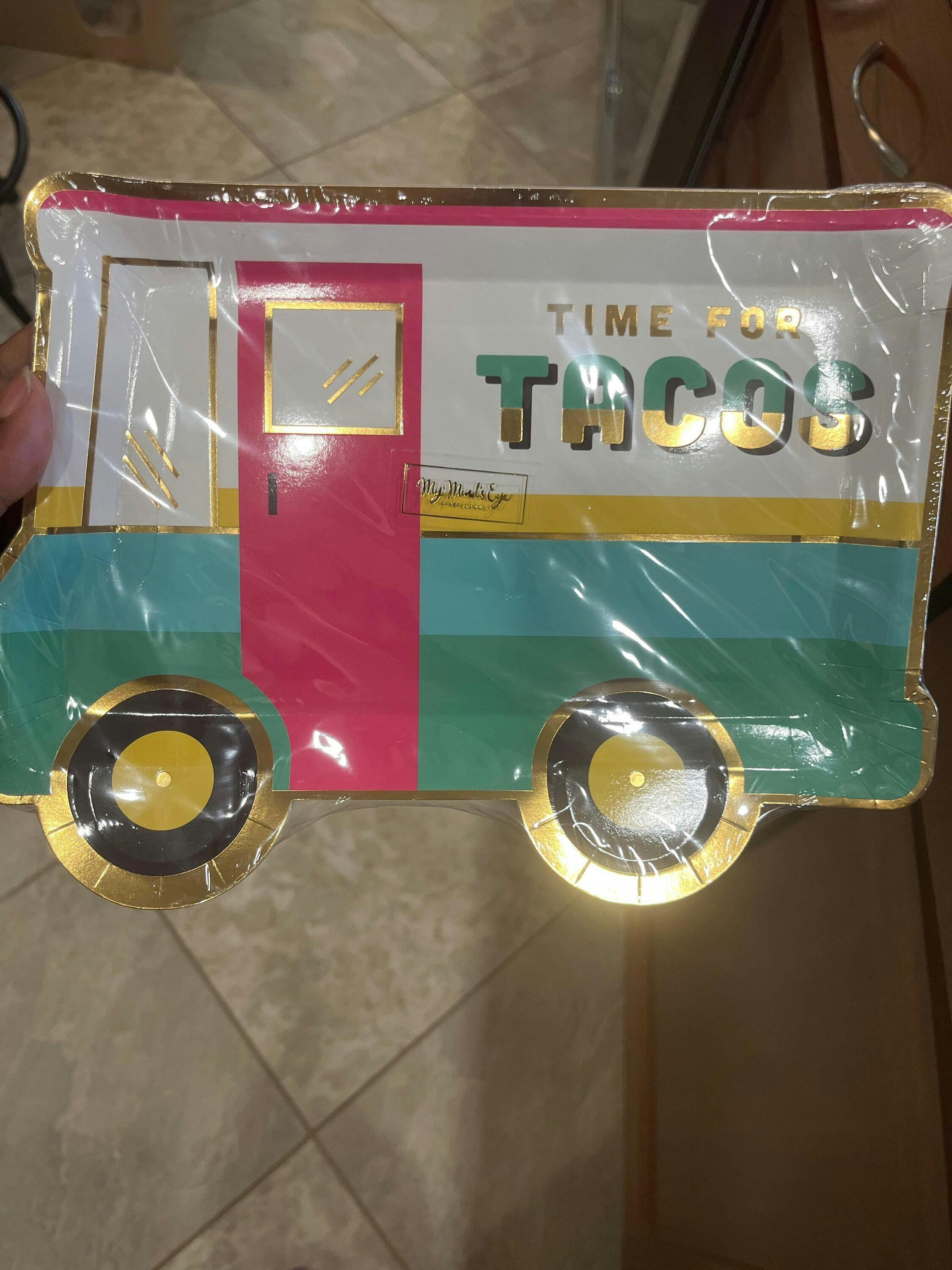 Enjoy some delicious tacos and chips and guacamole when you set the tables with Taco Truck Lunch Plates! These paper plates are shaped like an adorable taco truck with a bright pink door, gold foil detail, and a "time for tacos" headline. Guests will be ready to chow down at your Cinco de Mayo fiesta or child's Taco Twosday birthday party when you set the tables with these plates. Place these fiesta plates on the tables to add some spice to your taco bout a baby shower.